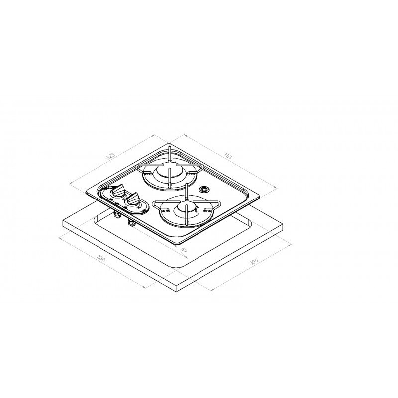 Piano cottura a gas con accensione manuale, in acciaio inox lucidato a specchio. Montaggio ad incasso. Con termocoppia di sicurezza. Completo di viti di fissaggio. Con foro per ferma pentole. Certificati CE.