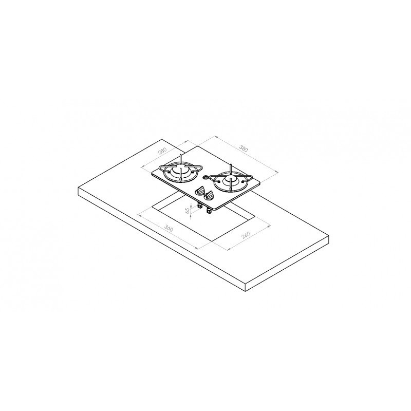 Piano cottura a gas con accensione manuale, in vetro temperato nero con spessore di 8 mm. Montaggio ad incasso. Con termocoppia di sicurezza. Con foro per ferma pentole. Certificati CE.