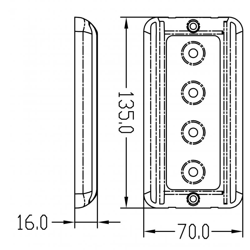 Plafoniera a LED per vano motori con corpo in alluminio verniciato di bianco. Montaggio in piano. Lucefredda (5500/6300K). Resistente agli spruzzi. Angolo fascio 110°. Durata 50000 ore. Alimentazione 8-30V. Lumen 426. Potenza 9W. Dimensioni mm 135x70x16h