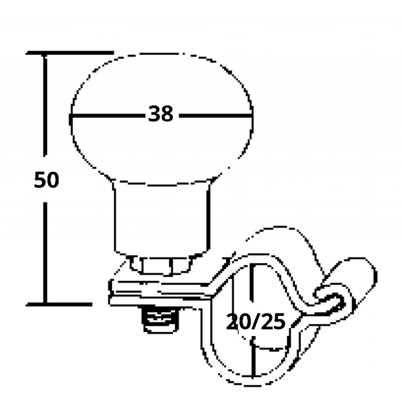 Pomolo girevole in acciaio inox aisi 316 per volante dim. mm. lung. 50 x spessore max. 38 x Ø utilizzabile 20/25