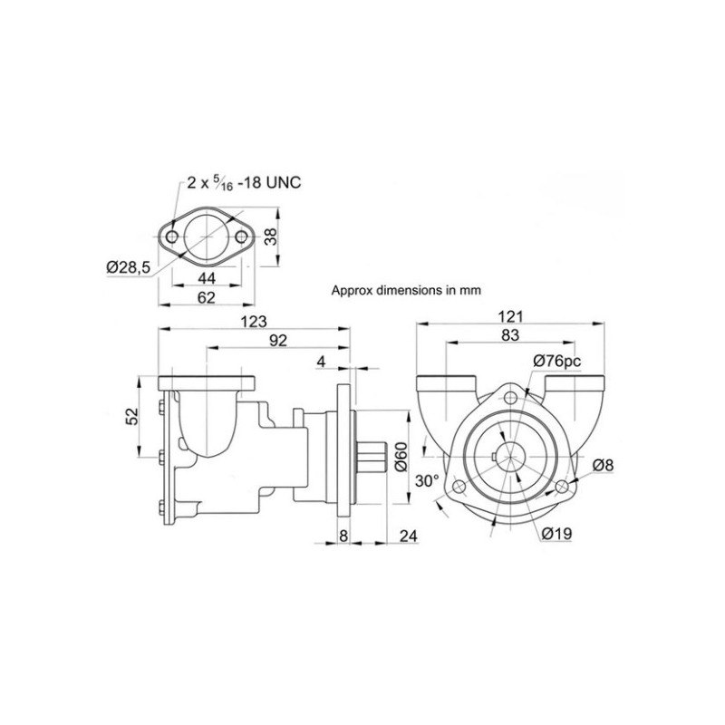 Portata nominale 80 LPM (17,8 GPM) a 1500 giri/minMateriale: bronzo di grado marino e acciaio inossidabilePompa taglia 080Primer autoadescante fino a 2,4 metri (7,9 piedi)Porte flangiate di ingresso e uscita da 1"Dimensioni 149x121x99 mm