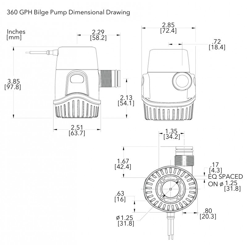 Pompe immersione RULE di nuova generazione. Grazie alla presenza di prese d’aria nascoste nel corpo pompa ed alla loro valvola di non ritorno prevengono il riflusso d’acqua e il formarsi di bolle d’aria nei tubi dell’impianto idrico. Ideale per piccole imbarcazioni.1.363 l/h (360 GPH) senza contropressione, a 2m di prevalenza 567 l/h (150 GPH).Valvola di ritorno in uscita come protezione contro il riflusso.Uscita avvitata che semplifica l'installazione e la manutenzione.Collegamento: 19mm (3/4") attacco tubo (diametro interno) o 19mm (3/4") NPSM.Consumo di corrente max 2.4A (13.6V), fusibile 4ADimensioni: Altezza 10.0 cm / Larghezza 7.4 cm / Profondità 6.4 cm (senza uscita).(ex codice FNI 1616180)
