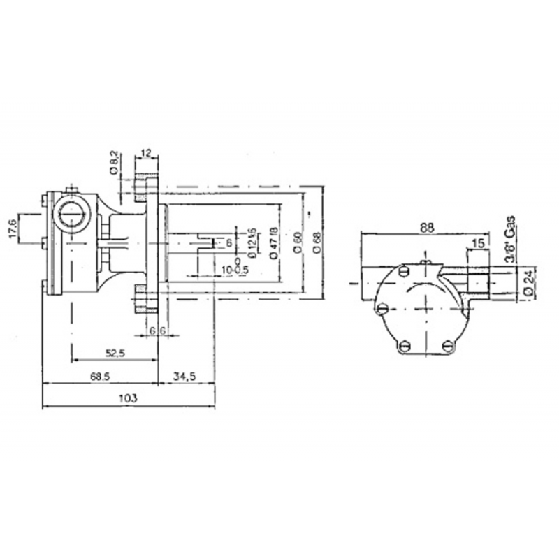 Pompa autoadescante in bronzo, bocche da 3/8, portata It./min. 13/28 per motori Nanni FK2/FK3, Aifo, Mitsubishi. Girante di ricambio art.2727101