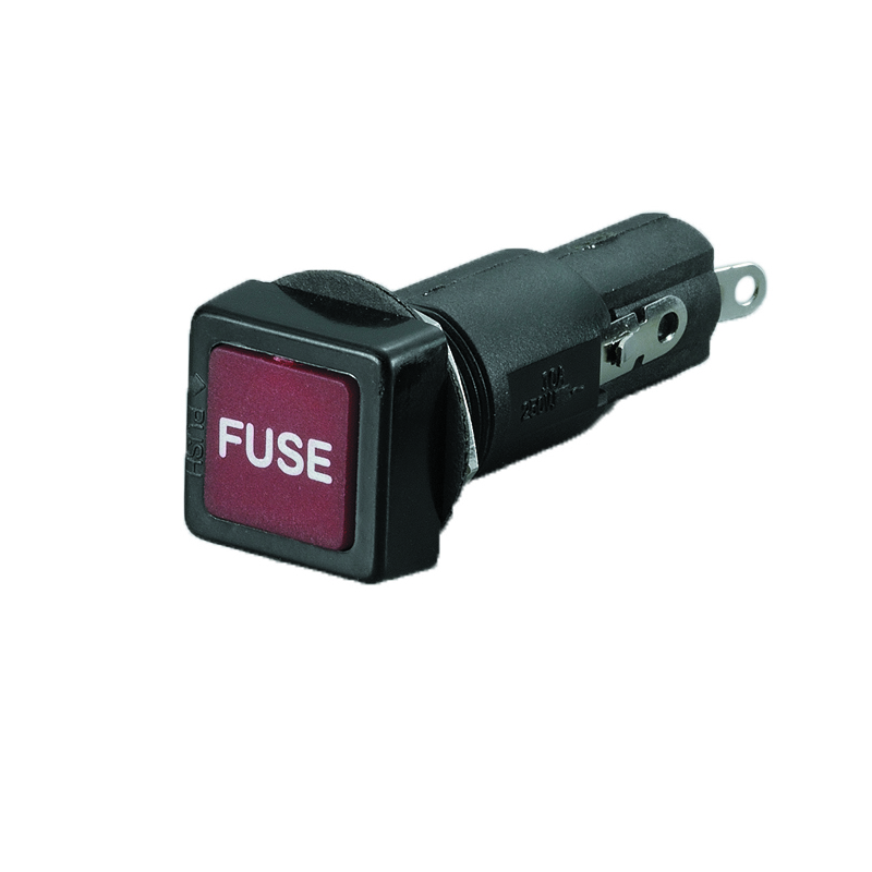 Portafusibile da incasso Max 10A. Tappo a scatto, contatti in ottone argentato, corpo in makrolon caricato vetro dimensioni mm. 16, per fusibili vetro da diametro mm. 6,3 x lung. mm. 32. Per pannelli art. 3939213/216.