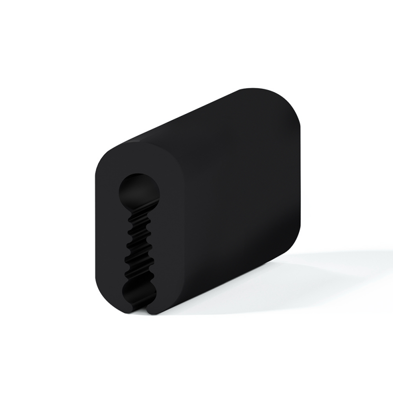 Profilo di finitura in PVC morbido senza armatura metallica per rifinire bordi in vetroresina, legno, metallo, vetro o altro materiale di spessore da mm 3 a mm 5. Confezione rotolo da circa 20 mt.