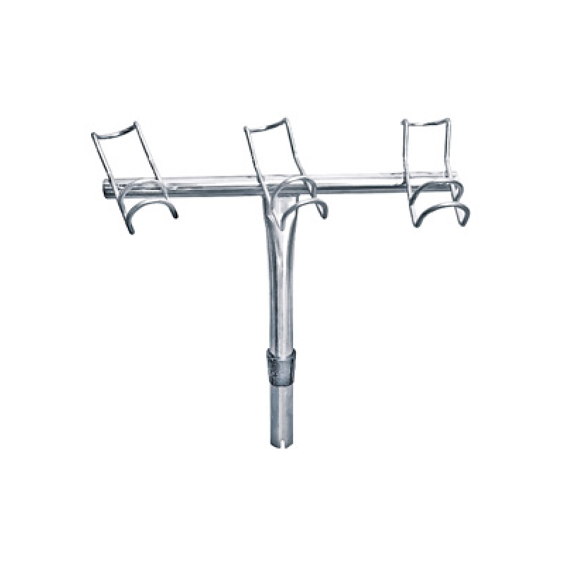 Portacanna in acciaio inox per 3 canne. Fissaggio nel portacanna ad incasso da 90°. Palo mm. 32.