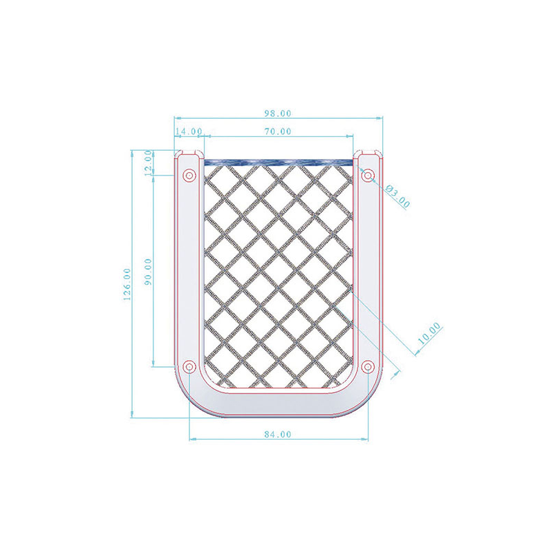 Rete portaoggetti con filetto superiore in treccia elastica, fissaggio con viti, dimensioni mm. 126 x 98