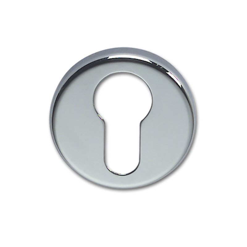 Rosetta completa di bocchetta in polipropilene per permettere il montaggio senza viti esterne conforo per serratura Yale, in ottone cromato. Dim. Ø mm. 48 x 8 h