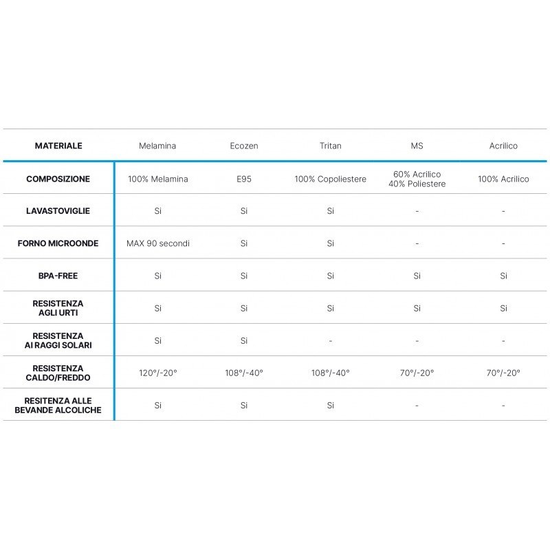 Bicchieri da champagne in Ecozen BPA Free. Infrangibile effetto cristallo. Con anello antiscivolo alla base. Lavabile in lavastoviglie e resistente ai graffi. Ml 170