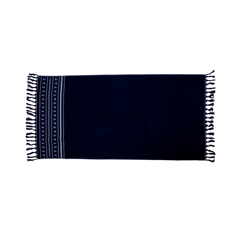 Telo da spiaggia con frange, di grandi dimensioni e con disegno nautico. Fabbricato in spugna 100% cotone. Perfetto come telo da ponte di barca.