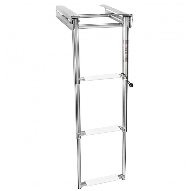 Scaletta in acciaio inox AISI 316 telescopica, provvista di guida di scorrimento, applicazione sotto plancetta. Gradini antiscivolo in plastica, versione con fermo frontale nella parte sfilabile