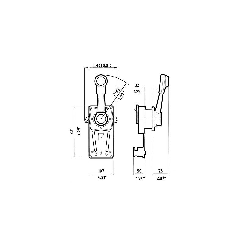 Monoleva ad azione doppia per il controllo del gas e dell’invertitore con dispositivo di blocco della leva con impugnatura priva di sporgenze per I’uso su imbarcazioni a vela. Adatta a qualsiasi tipo d’imbarcazione con motore fuoribordo, entrobordo e gruppi poppieri provvisti d’invertitore idraulico. Può essere montata sulla paratia destra o sinistra, orizzontalmente o verticalmente. II gruppo mozzo più leva é in alluminio pressofuso e verniciato. Provvista di frizione per registrare I’acceleratore, regolabile dall’esterno. Tirando in fuori la leva si disinnesta I’invertitore durante I’operazione di riscaldamento del motore. Mediante I’interruttore di sicurezza X12 (optional), I’avviamento del motore si ottiene solamente con I’invertitore in posizione di folle. II modello B184 presenta nell’impugnatura un interruttore per trim che permette la regolazione dell’alzo piede nei motori fuoribordo e nei gruppipoppieri. Utilizza tutti i cavi per il comando motore C2-C8-C14 e Mach0-Mach14. Con i cavi C5-C16 e Mach 5 occorre il kit di adattamento K35 art. 4242069.