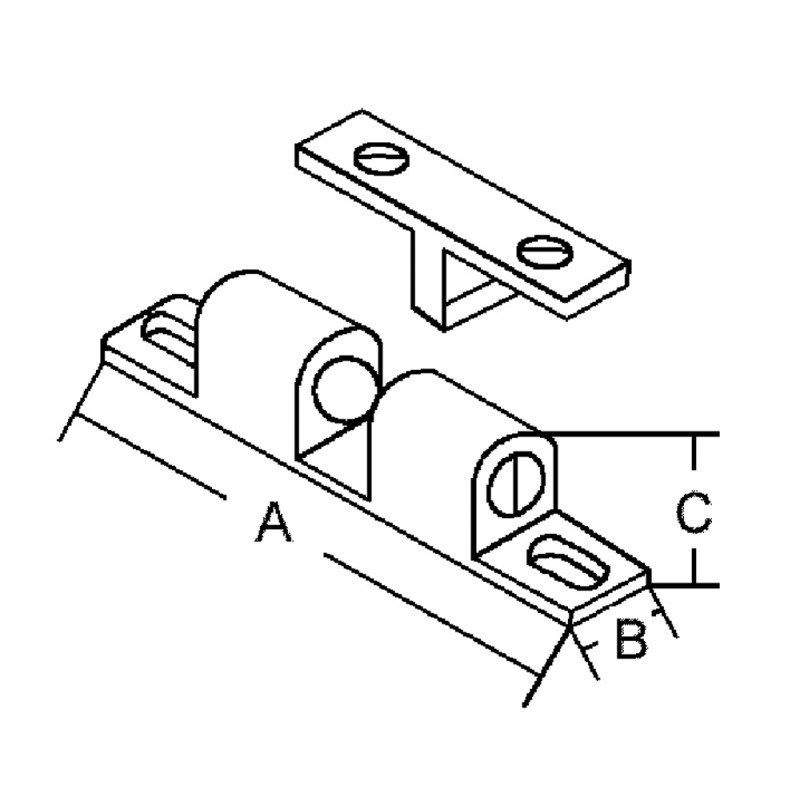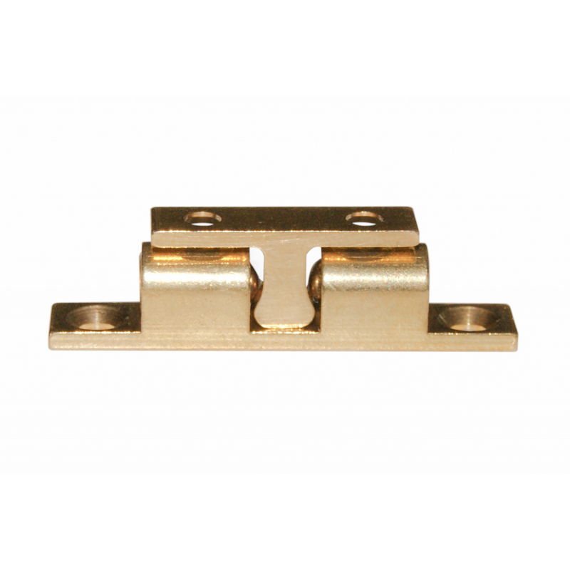 Scrocchetto a doppia sfera in ottone lucido. La forza di chiusura è regolabile tramite vite di registrazione.