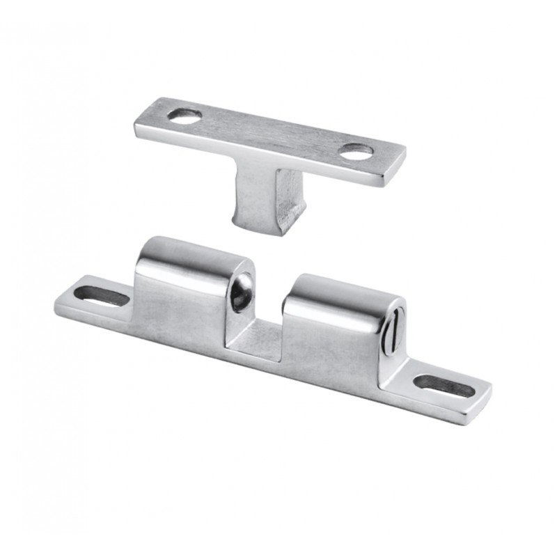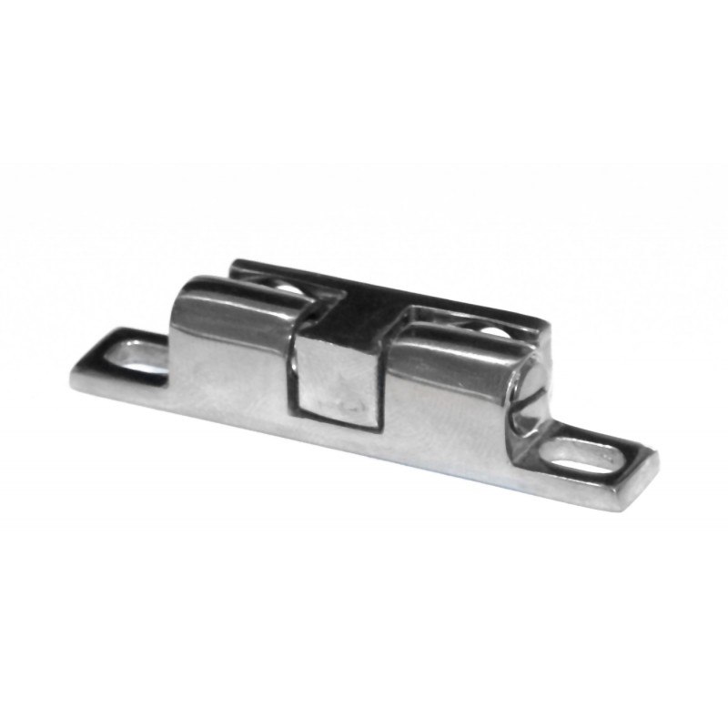Scrocchetto a doppia sfera in acciaio inox AISI 316, fori delle viti ad asola per un perfetto allineamento. Stringendo le viti si può regolare la potenza di tenuta, max 4 kg. Montaggio sia in verticale che in orizzontale.