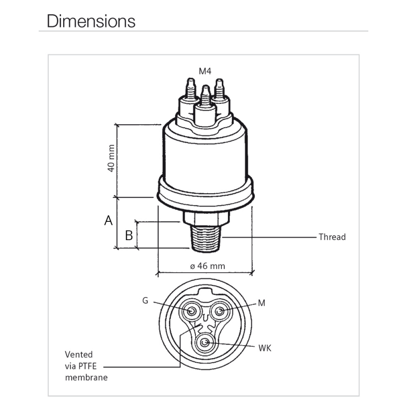 Dotato di 3 poli di collegamento (G, M, WK) isolati dal bulbo. Contatto di allarme a 0,8 bar. - Art. Vdo. 360-081-039-003C