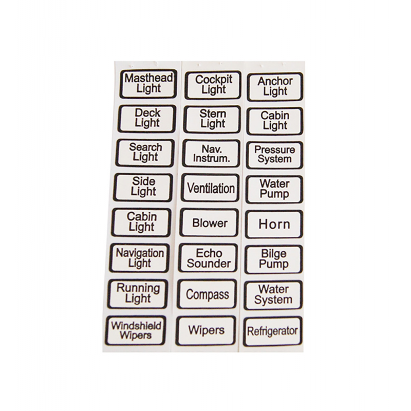 Serie di simboli adesivi colore bianco per interruttori in rilievo 24 utenze,dim. mm. 22 x 11