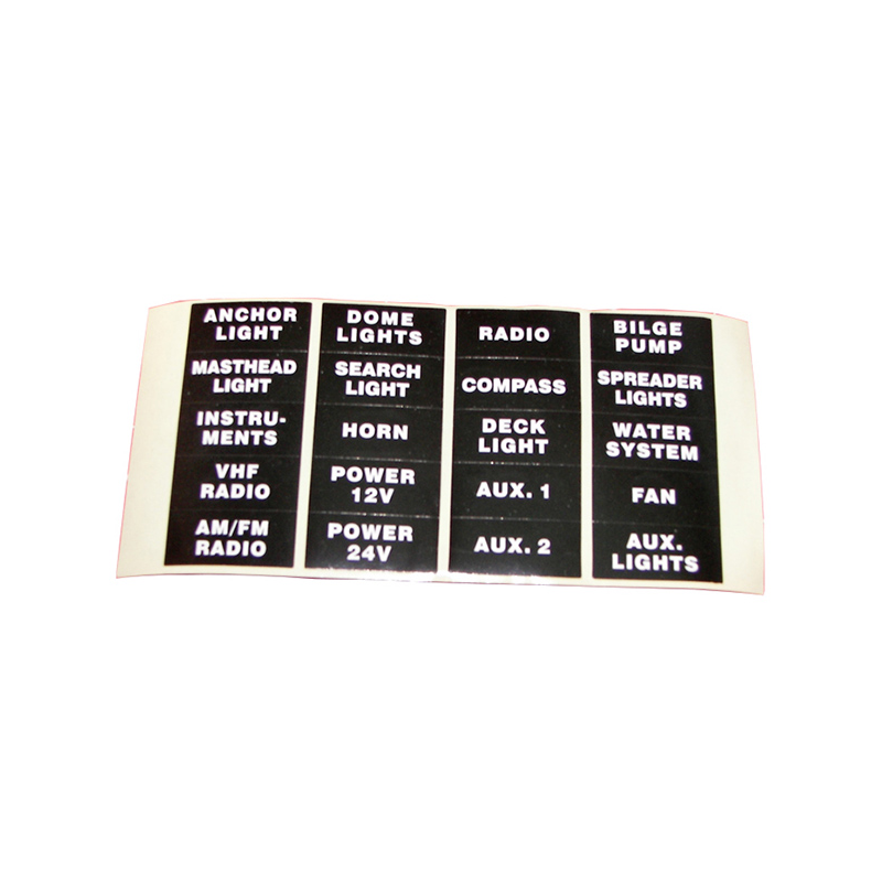 Serie di simboli adesivi colore nero per interruttori in rilievo 20 utenze, dim. mm. 28 x 12