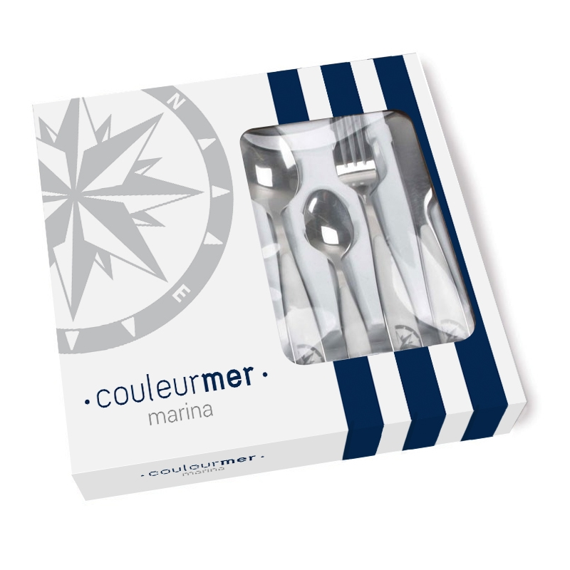 Set per 6 persone di posate in acciaio inox lavabili in lavastoviglie composto da n. 24 pezzi totali: n. 6 cucchiai, n. 6 forchette, n. 6 coltelli, n. 6 cucchiaini da caffé.
