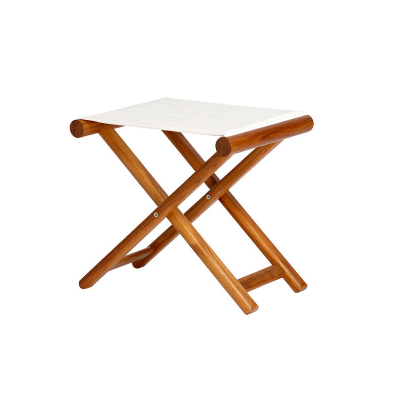 Sgabelli in teak, pieghevoli. Con tessuto impermeabile, anti UV.