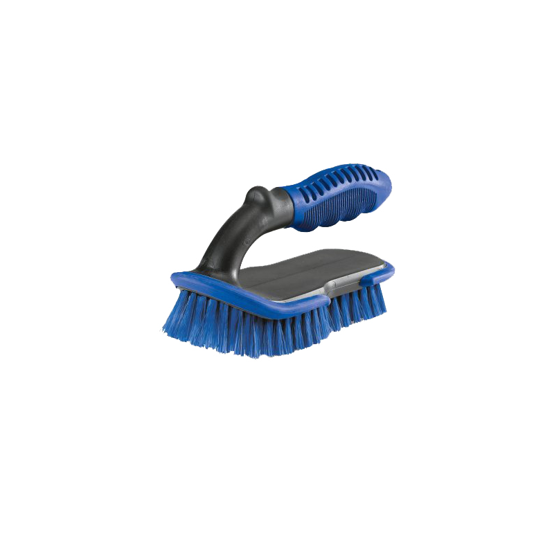 Spazzola con maniglia con setole resistenti ai solventi di lavaggio. Paracolpi morbido perimetrale e maniglia atta a esercitare una elevata pressione.