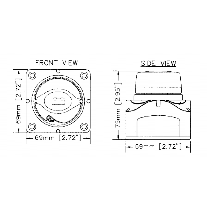 Stacca batteria BEP il sistema brevettato permette il montaggio modulare di più interruttori. La manopola non può essere rimossa nelle posizioni ON e OFF, ma solo ruotandola in senso antiorario di 45°. Montaggio in piano o ad incasso (foro Ø mm. 52). 275 AMP in servizio continuo, 1250 AMP di spunto. Terminali di collegamento: 2x10 mm.