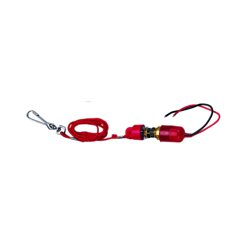 Stacco automatico di sicurezza a strappo in ottone cromato regolamentare per l’accensione. Interrompe il circuito in caso di caduta fuoribordo delpilota. 12 Vdc 15A.