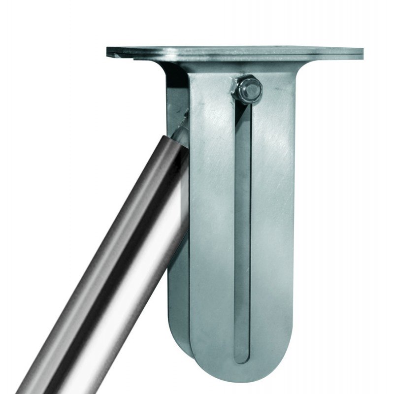 Staffa scorrevole in acciaio inox. In caso di interruzione di corrente, questa staffa consente di aprire il portello di un minimo di 12,7 cm per rimuovere la spina di blocco e consentirne l’apertura.