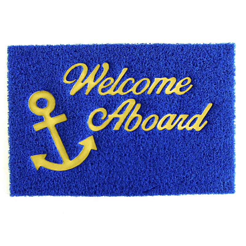 In morbido e resistente PVC antiscivolo, antiolio, benzina, acqua di mare e raggi U.V. Lo strato superiore è costruito per intrappolare lo sporco e la polvere. Per la pulizia utilizzare un aspirapolvere, sbattere o lavare con detergenti non aggressivi. Colore Blu. Dim. mm 900x600