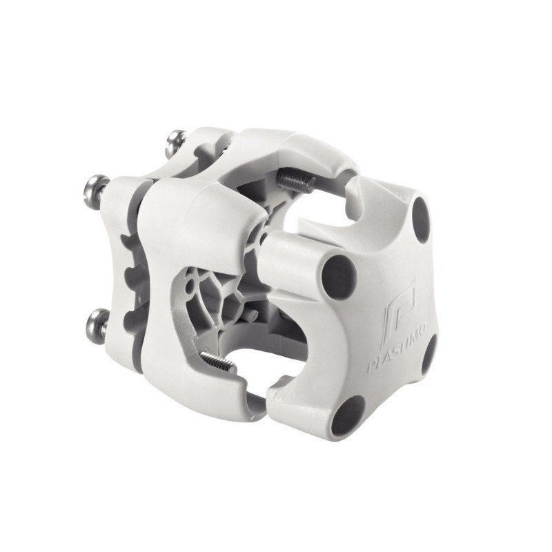 Morsetto in poliammide ad alta resistenza e acciaio inox. Montaggio semplice e veloce su qualsiasi tubo da Ø 15,5 a 25,5 mm, senza forare. Montaggio verticale o orizzontale. Consegnato completo di morsetto, viti e supporto.