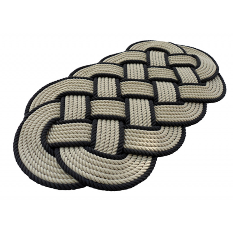 Tappeto ovale tradizionale intrecciato a mano in cordaritorta di fiocco poliestere bicolore. La qualità del materialegarantisce la tenuta del colore e la durata nel tempo. Dim. mm 600x330, Ø cima mm 10