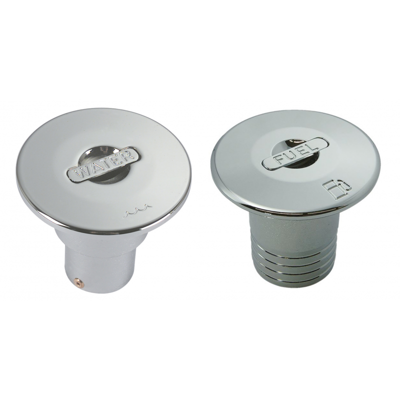 Tappo imbarco in ottone cromato a filo con specialeapertura a scomparsa.Ingombro massimo Ø mm. 89