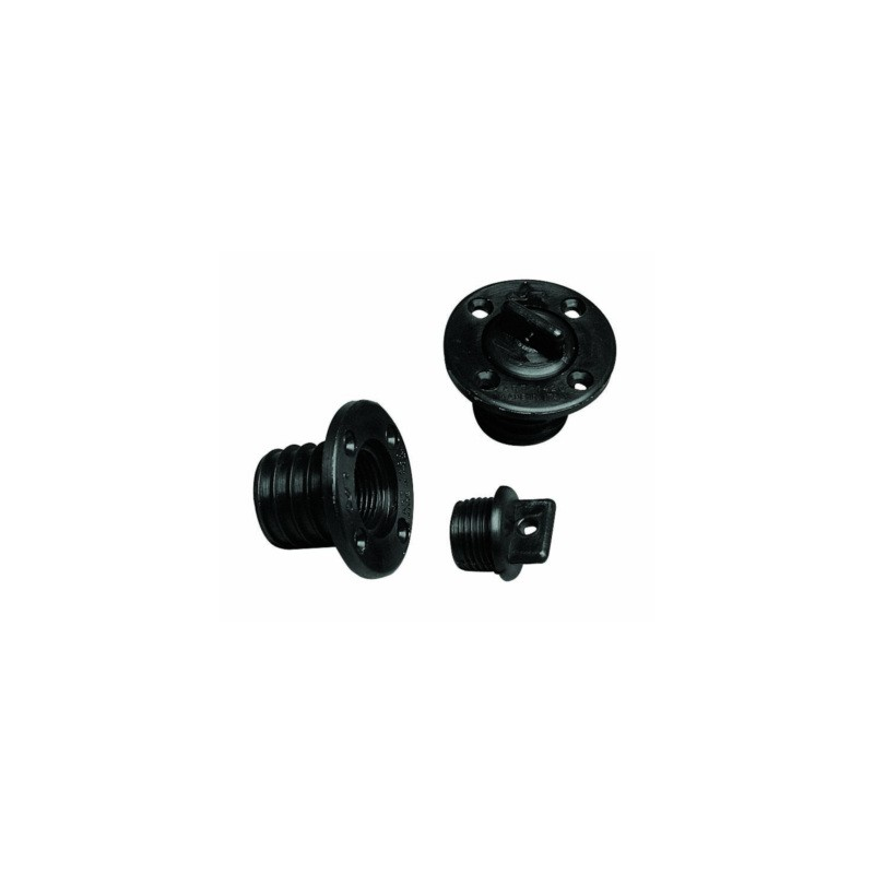 Ombrinale rotondo con tappo a vite fabbricato in nylon, foro Ø 16 mm., esterno Ø 27 mm