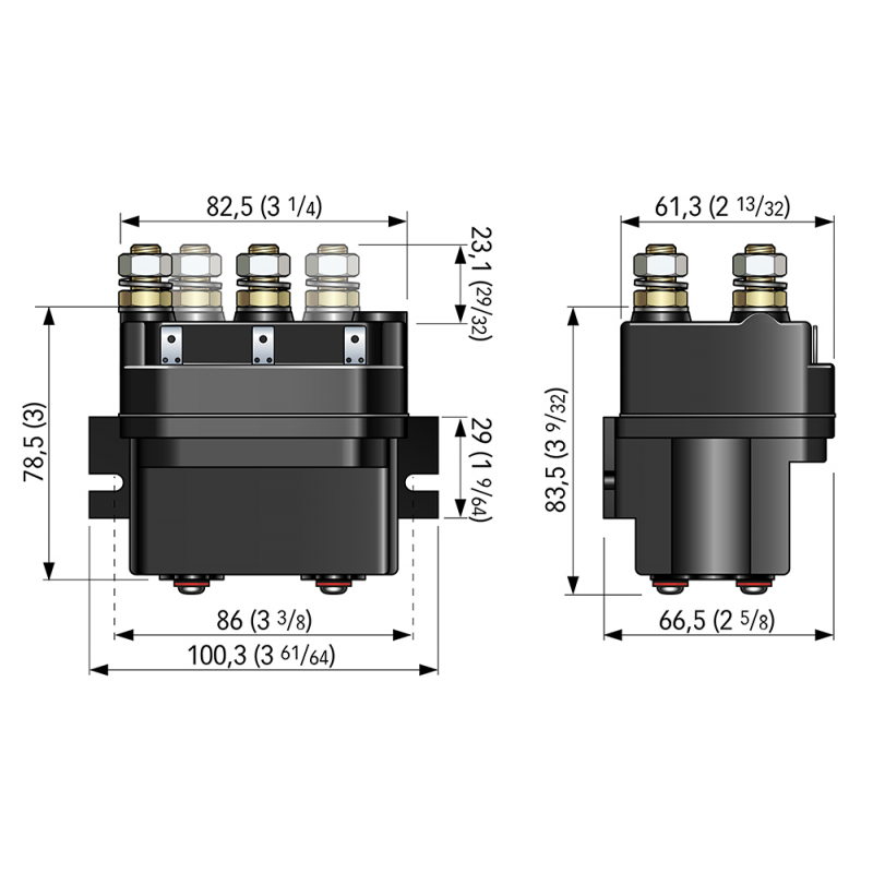 Teleruttore per collegare in corrente continua (DC), e azionare motori elettrici di salpa ancore e verricelli da tonneggio.Il teleruttore T6415 è provvisto di collegamenti esterni ed è facile da installare. Grado di protezione IP66 (escluso i terminali). Potenza motore 2500W, 12V, 4 terminali. Dim. mm. 100x67x84h.