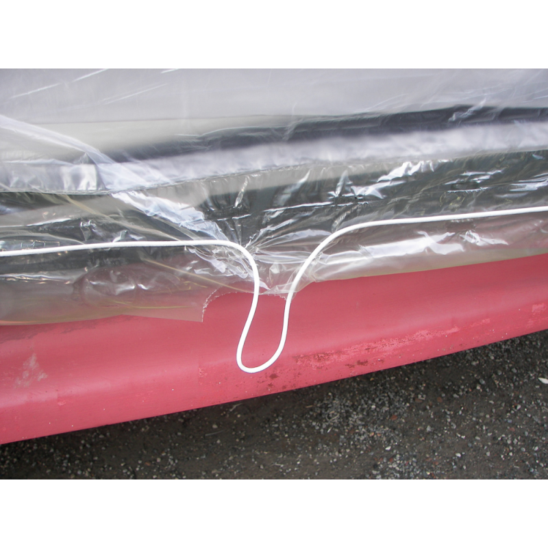 Copertura Nautica Indoor, versione con elastico. La sua particolarità sono i 2 elastici applicati lateralmente su tutta la lunghezza, atti a facilitare ed a ridurre i tempi della messa in opera.Istruzioni di montaggio:1. Srotolare il telo dalla poppa alla prua mantenendosi centrali all’imbarcazione lasciando un esubero di circa 50 cm per parte.2. Applicare 2 fascette distanziate circa 30 cm e tagliare il telo.3. Estrarre gli elastici ed annodarli.4. Aprire il telo sull’imbarcazione.5. Tirare l’elastico da una delle estremità ed annodarlo per mantenerlo in trazione.6. Utilizzare se necessario gli appositi pre tagli con rinforzi per collegare l’elastico perimetrale trasversalmente. Venduta a rotolo