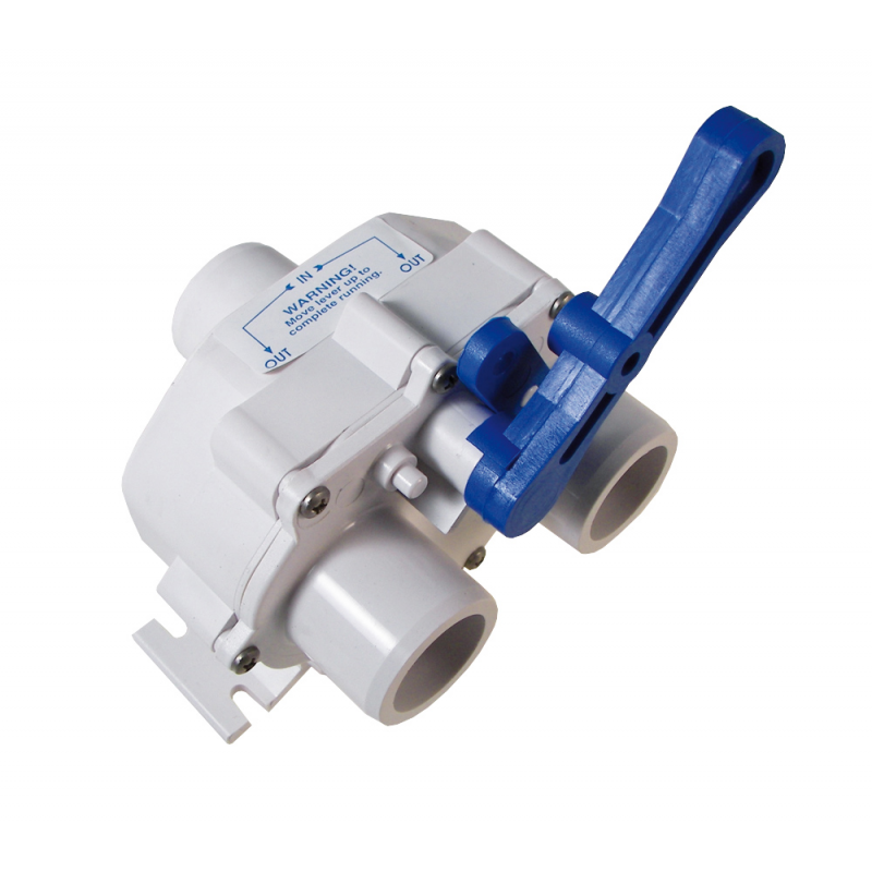 Valvola a Y in nylon per servizi igienici. Si può usare per scaricare direttamente in mare o nel serbatoio acque nere. Predisposta per comando a distanza tramite cavo B14. Portagomma Ø mm. 38. Dimensioni mm 140x150x150.