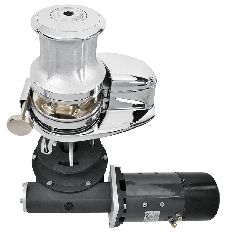 Verricello in bronzo cromato resistente alla corrosione marina, consigliato per barche da 18 a 25 mt. Completo di control box e maniglia. 2300 W, 24V, Tiro max. istantaneo kg. 2100, Velocità di recupero mt/min. 12/25, Ø catena mm. 10, Assorbimento Amp. 160, Peso Kg. 72.