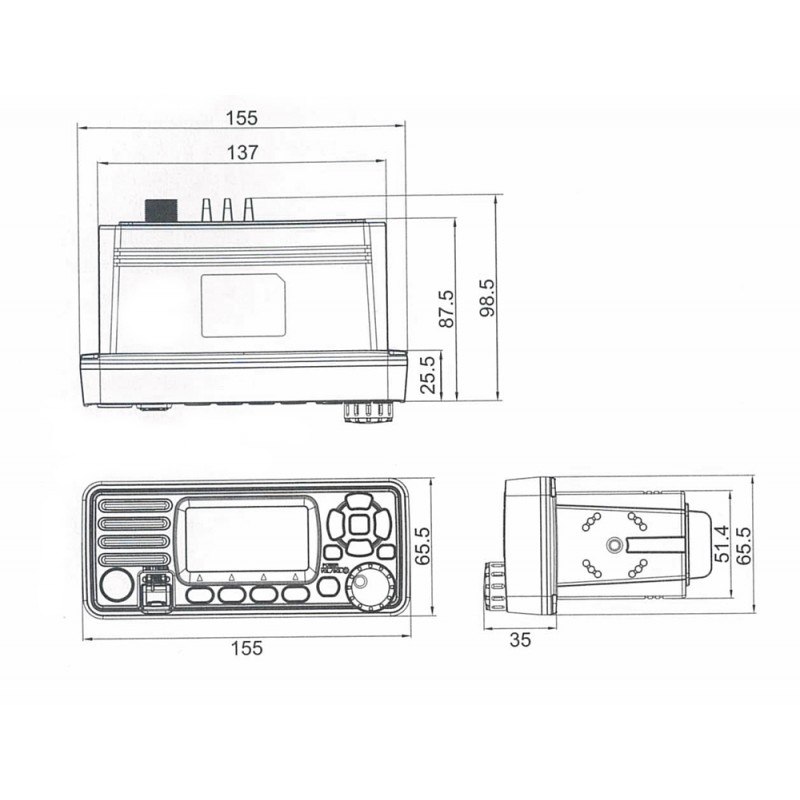Vhf con Ricevitore Gps e Modulo DSC classe D. Inserito L’identificativo MMSI (codice dell’imbarcazione rilasciata dall’apposità autorità) è possibile comunicare con altre imbarcazioni o con le autorità sul canale 70. Display a matrice di punti ad elevata leggibilità. Protetto dalle intemperie IPX7. Funzione di pulitura dell’altoparlante per espellere l’acqua. Protocollo Nmea standard 0183 su RS422 . Funzioni Vhf Standard come canale 16, Distress, dual/Tri-Watch, scansione dei canali. Possibilità di collegare un altoparlante esterno. Contenuto confezione: Microfono palmare, staffa fissaggio, antenna Gps, cavo alimentazione.
