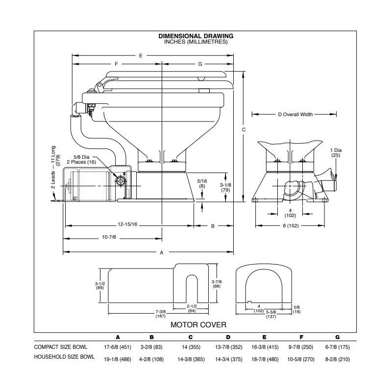WC elettrico in vetroceramica bianca dal design. Pompa maceratore ad alte prestazioni. Pompa di risciacquo autoadescante fino a 1,2 metri progettata per portare acqua di mare. Il dispositivo antiriflusso integrato protegge dalle inondazioni e dal ritorno dei rifiuti Può essere montato fino a 1 metro sotto la linea di galleggiamento.Portata circa 0,9 - 1,4 L per 5 secondi di funzionamento. Operazione tramite semplice interruttore a pulsante.Collegamenti: Ingresso 16 o 19 mm (5/8" o 3/4"), uscita 25,4 mm (1").Incluso: Adattatore per tubo flessibile per il collegamento al tubo dell'acqua di scarico da 38mm (1-1/2"), interruttore.Assorbimento 16A, fusibile 25ADimensioni: Altezza 36,5 cm / Larghezza 48,6 cm / Profondità 37,5 cm